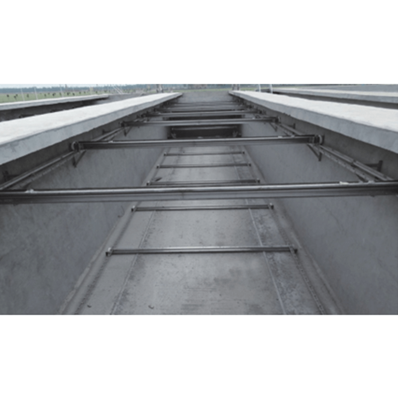 该设备适用于平流沉淀池及隔油池的集泥、排泥、除砂、除渣、除油。本机由驱动装置、传动链条与链轮、牵引链与链轮、刮板、导向轮、涨紧装置、链轮轴、导轨支架等组成。链板式刮油刮泥机应用于炼油厂,水厂或污水处理厂的沉淀池,沉砂池,隔油池等矩形池的撇浮油,浮渣和刮泥砂。